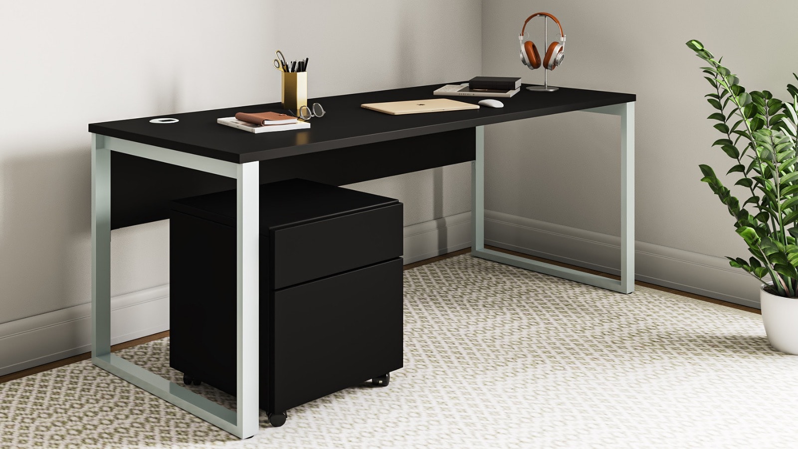 Made to order in the finish of your choosing, it arrives to you quickly. Choose from a huge selection of finishes like Colombian Walnut, Beachwood, White, and Black. This high-quality 72″ desk has a stability panel on the back that ensures quality for years to come.