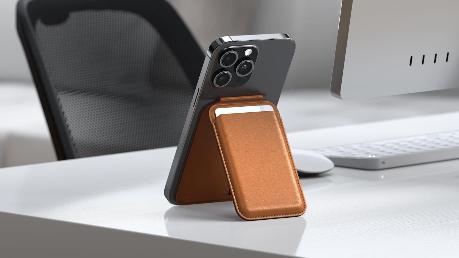 Meet the Satechi Vegan-Leather magnetic wallet stand for iPhone 15. It combines function and style with its wallet/stand capabilities and minimalist design. Check it out.