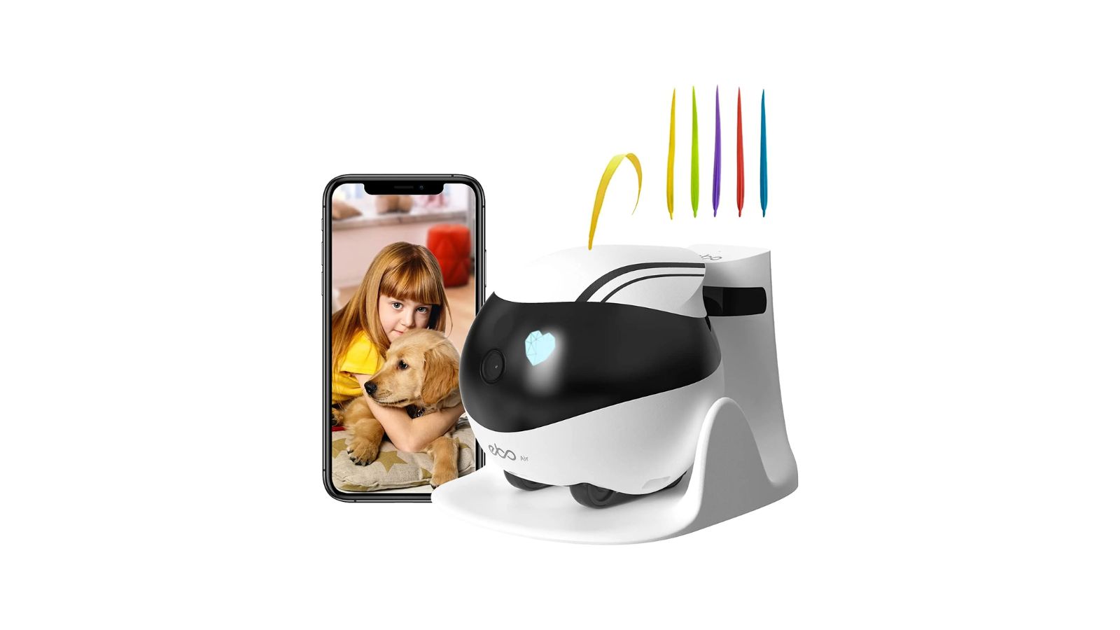 – Remote Control and Monitoring: With Wi-Fi connectivity and a Full 1080p HD camera, EBO Air enables remote viewing. Its powerful speakers and microphone let you chat, play, and more.