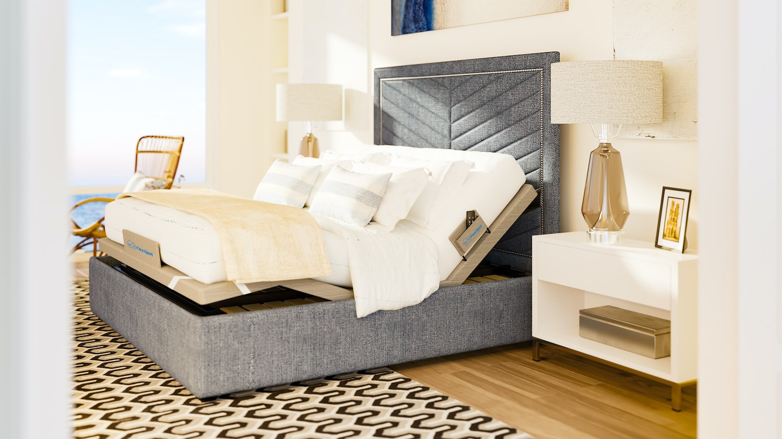 Smoothly adjust your sleeping position with the FlexiSpot Adjustable Bed Base S5.