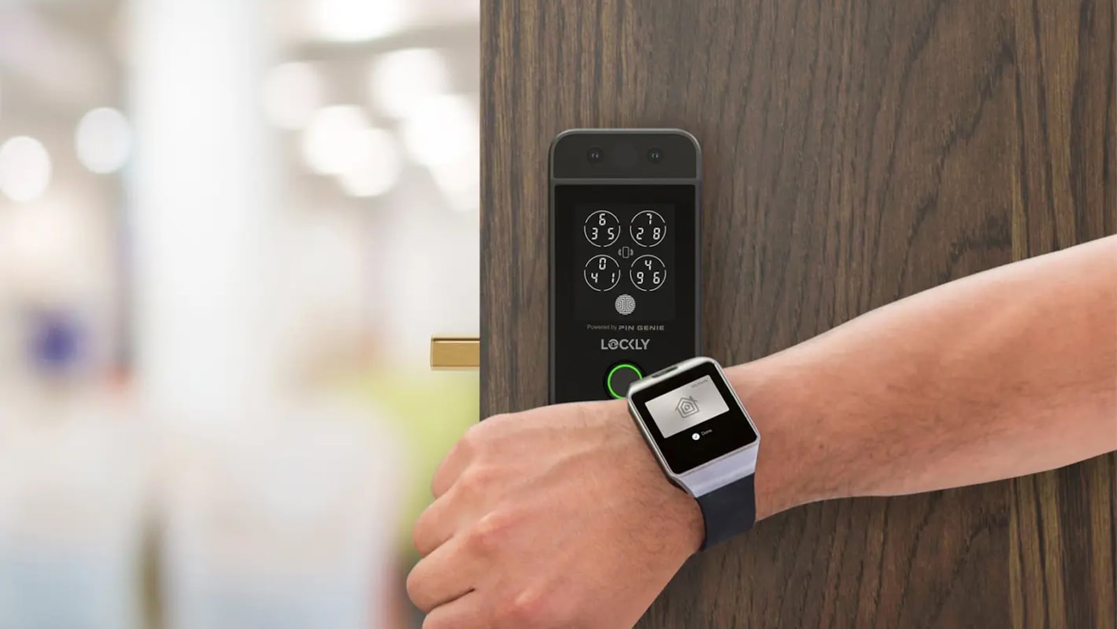 Meet the Lockly Visage facial recognition smart lock. It unlocks when you approach with Apple Home Keys or Apple Watch.