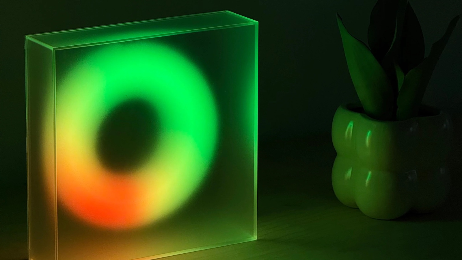 –Sculptural Look: Packs 80 color LEDs in a floating ring. Shines with 3D effects, sharp day or night.