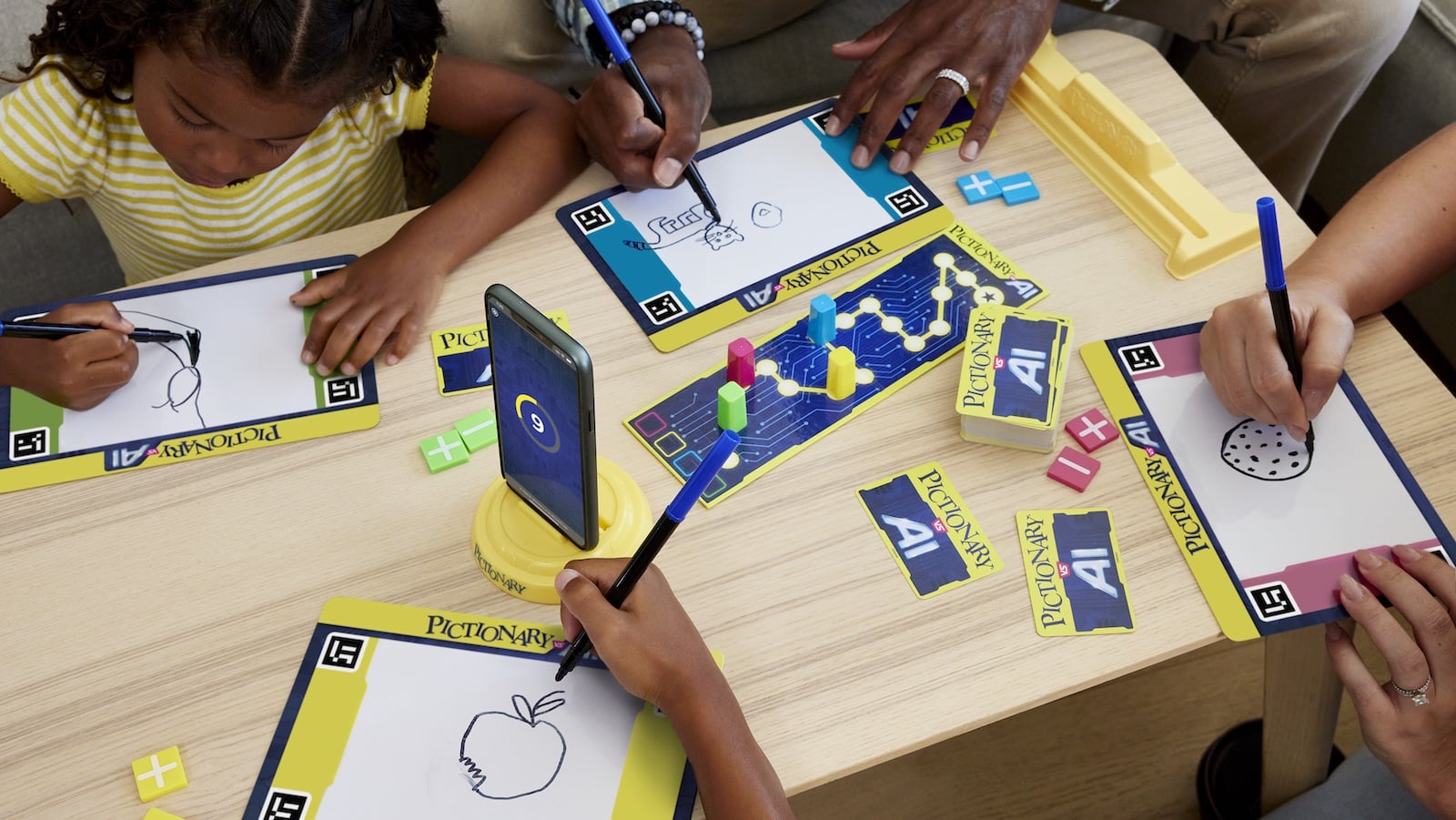 Take a classic game to the AI era with the Mattel Pictionary Vs. AI board game. This high-tech spin on the beloved game uses AI in its gameplay. Discover it: –You Sketch, AI Guesses: In this updated Pictionary game, AI guesses what players have drawn. If AI guesses correctly, you earn points.