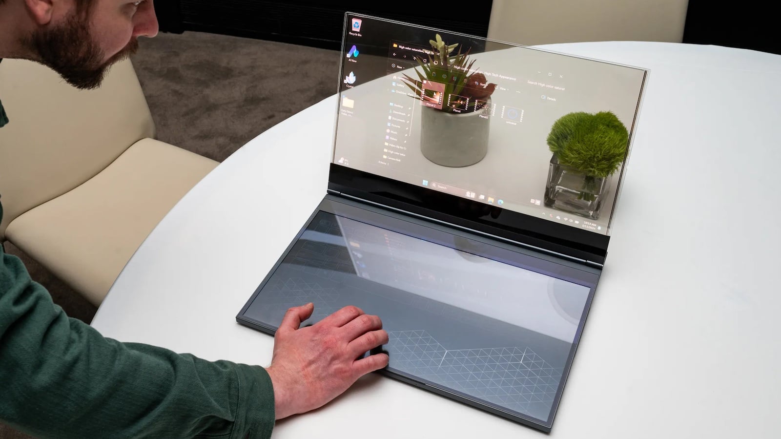 Blend physical and digital environments with this transparent display laptop!