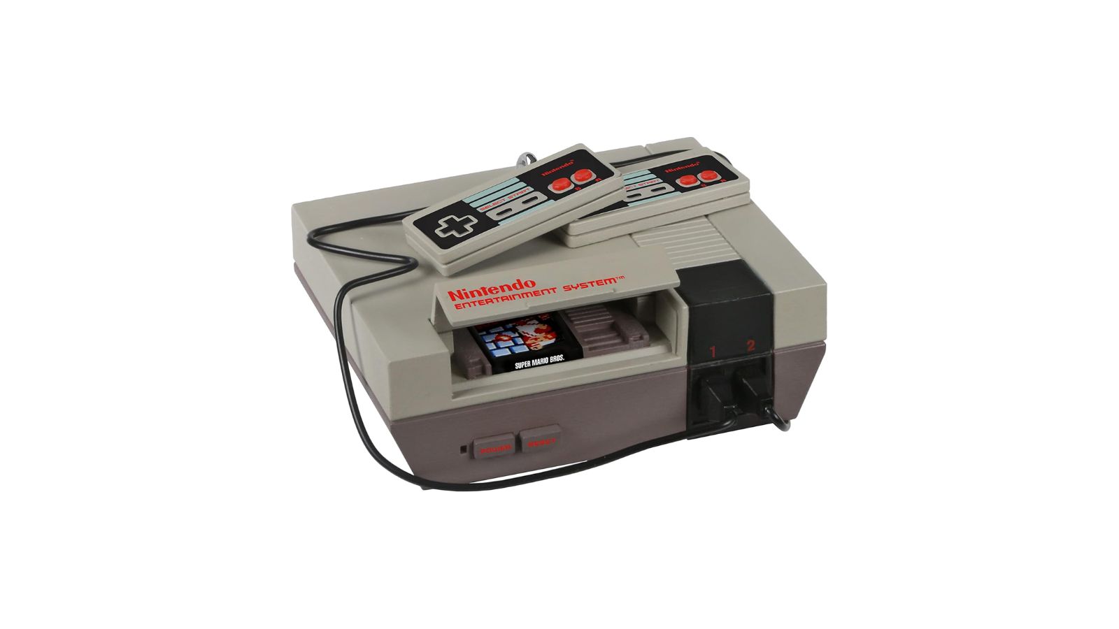 - Authentic Sound and Music: Plays Super Mario Bros. music and classic NES sound effects. The ornament recalls arcade-style moments.