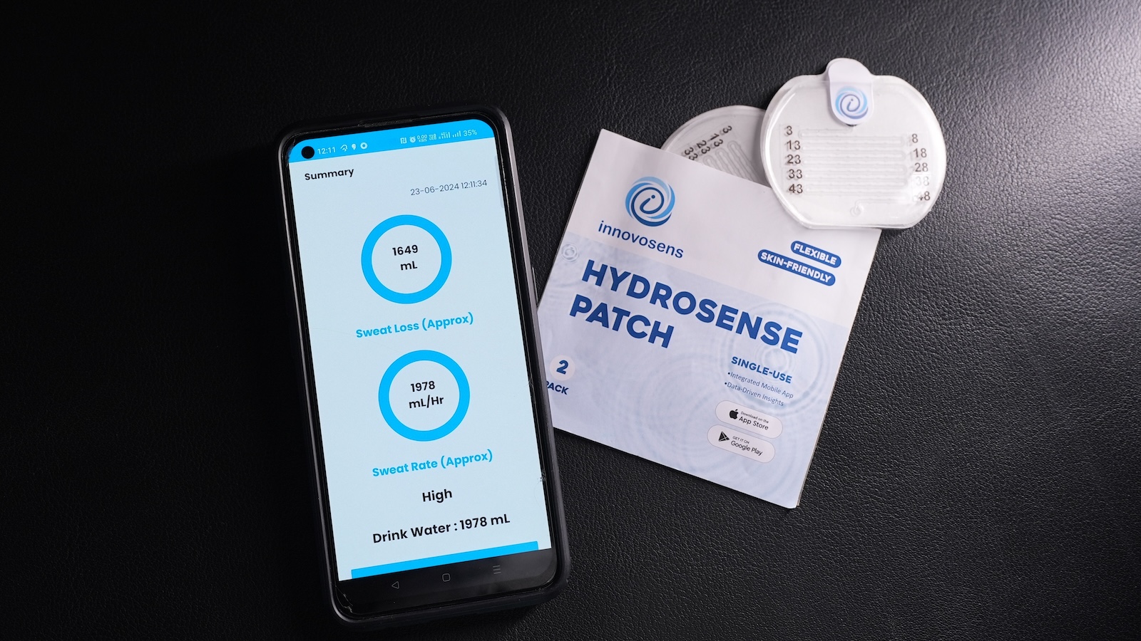 - Real-time sweat rate: The patch measures sweat continuously on the skin, so you see fluid loss during workouts or heat exposure and can rehydrate in time.