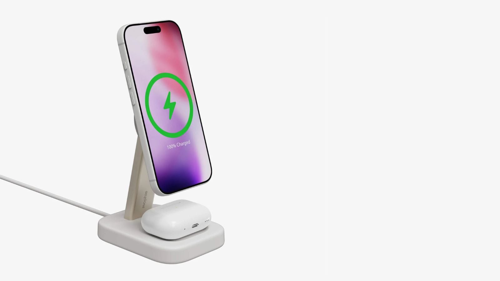 Get easy Qi2 charging with the mophie 2-in-1 Wireless Charging Stand for iPhone and AirPods. It frees desk space and keeps cables tidy!