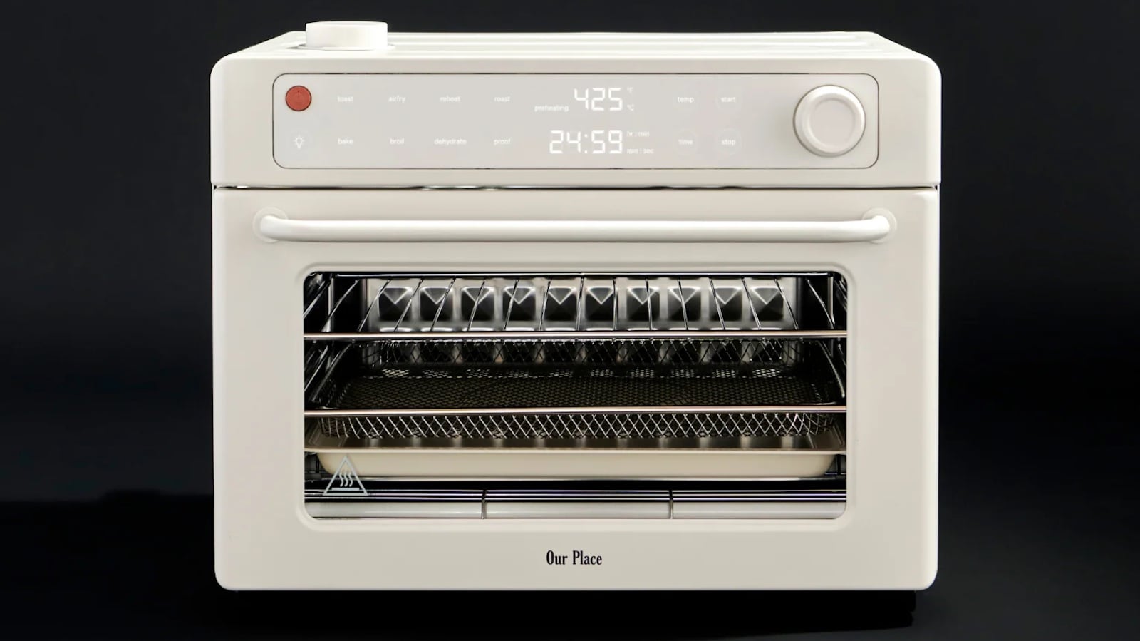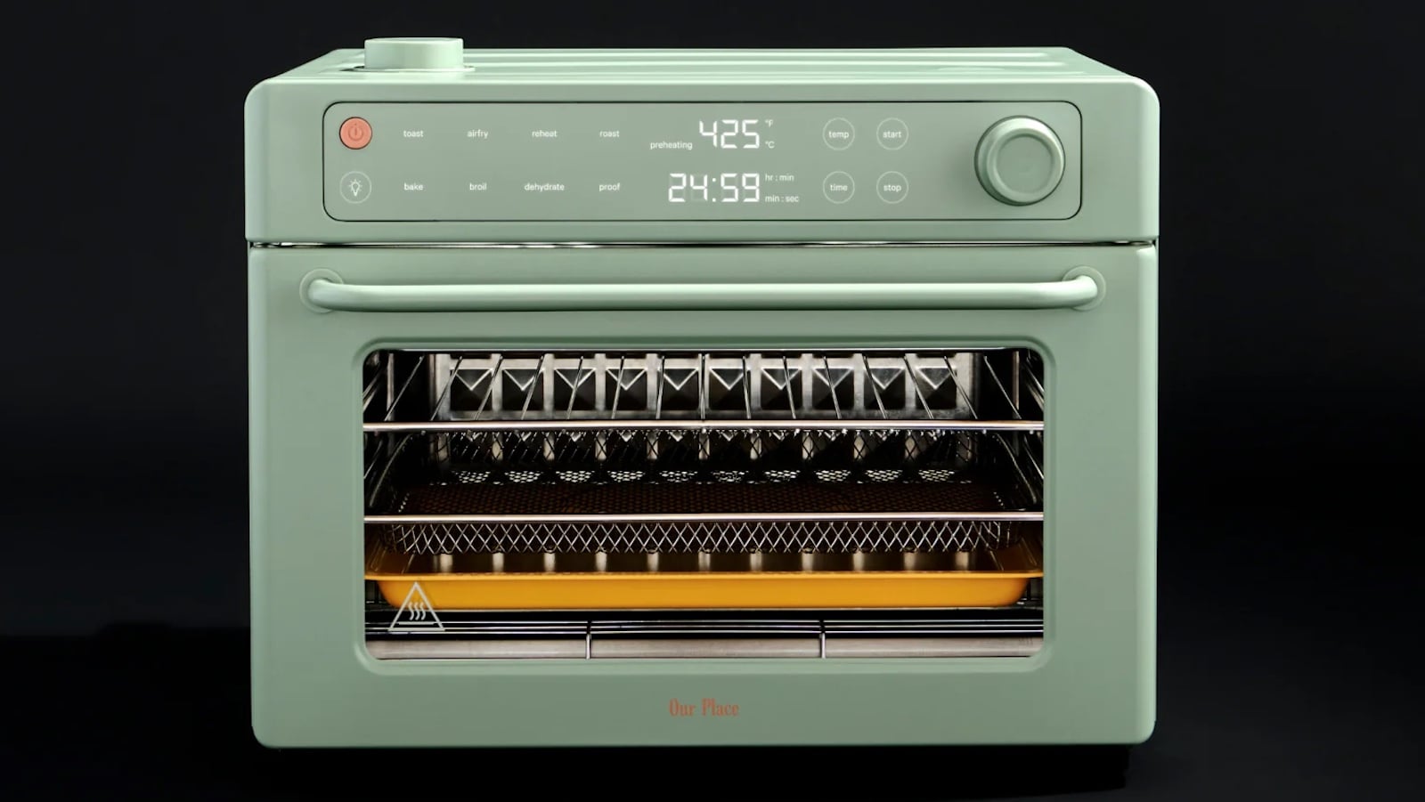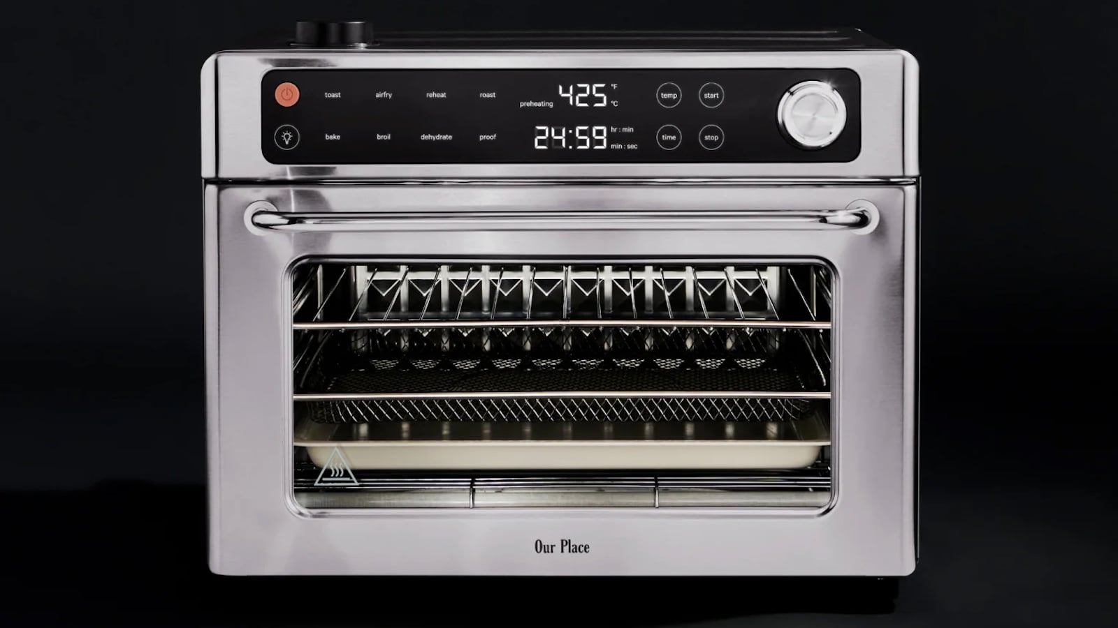The Our Place Wonder Oven Pro is a 30 L air fryer toaster oven built for family cooking. It combines fast heating, steam infusion, and precise digital controls.