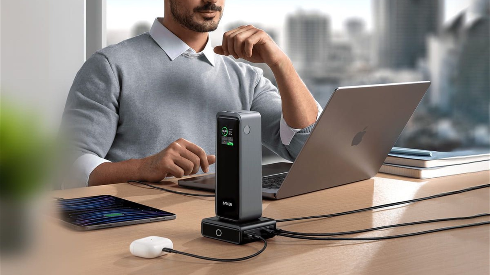 Anker Prime Charging Base is a compact desktop charger that powers multiple devices and Anker Prime power banks with pogo pins.
