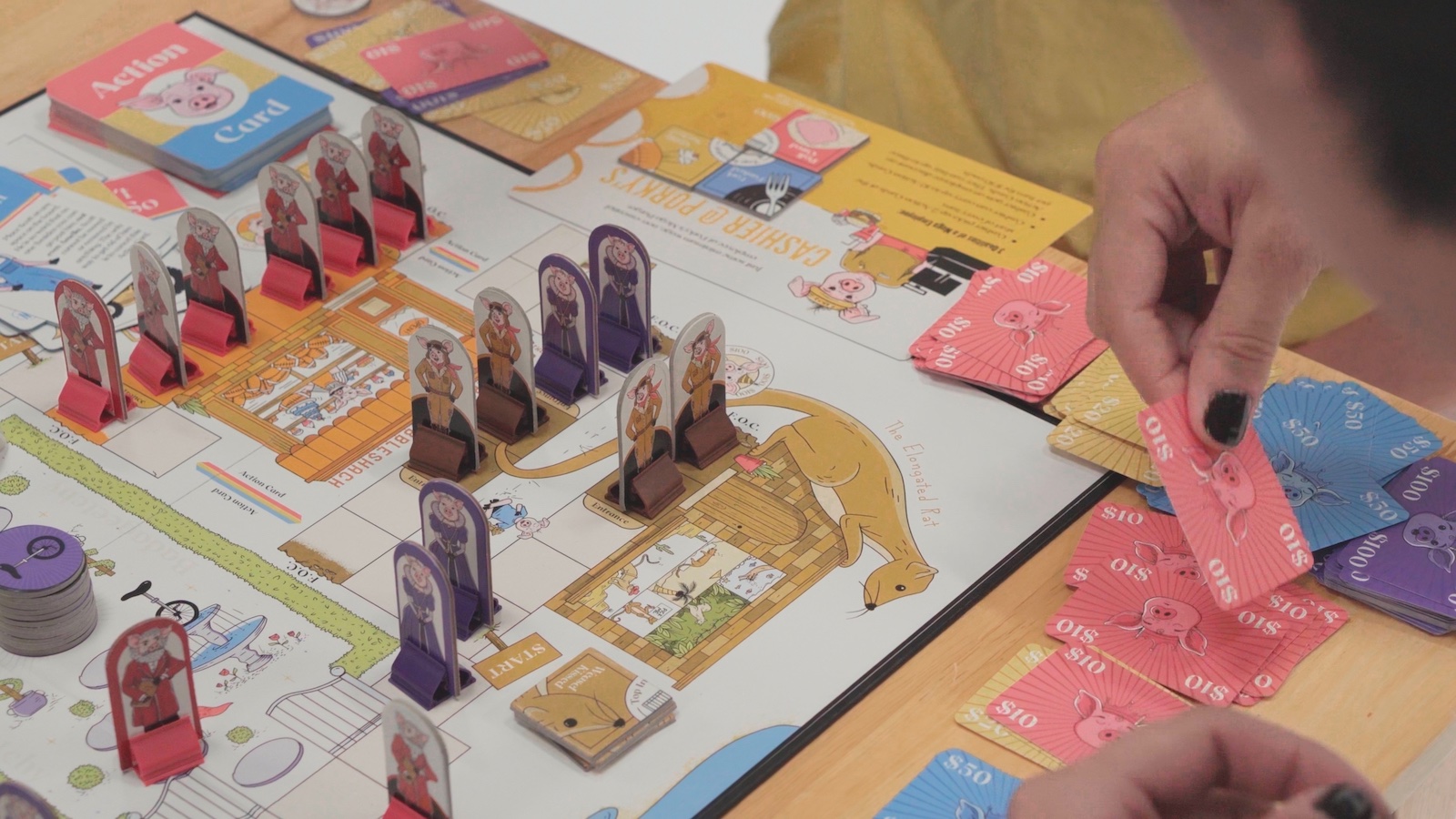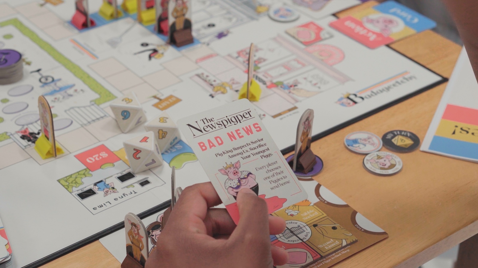 Full of goofiness and strategy, the Badageetchy piggy investment board game lets 2 to 5 players act as capitalist pigs.